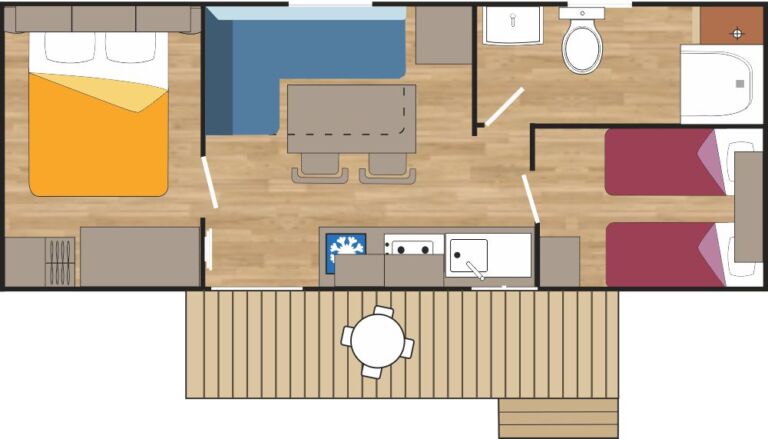 Le mobile home Prestige sono dotate di ampio soggiorno con divano letto e possono ospitare fino a 5 persone.